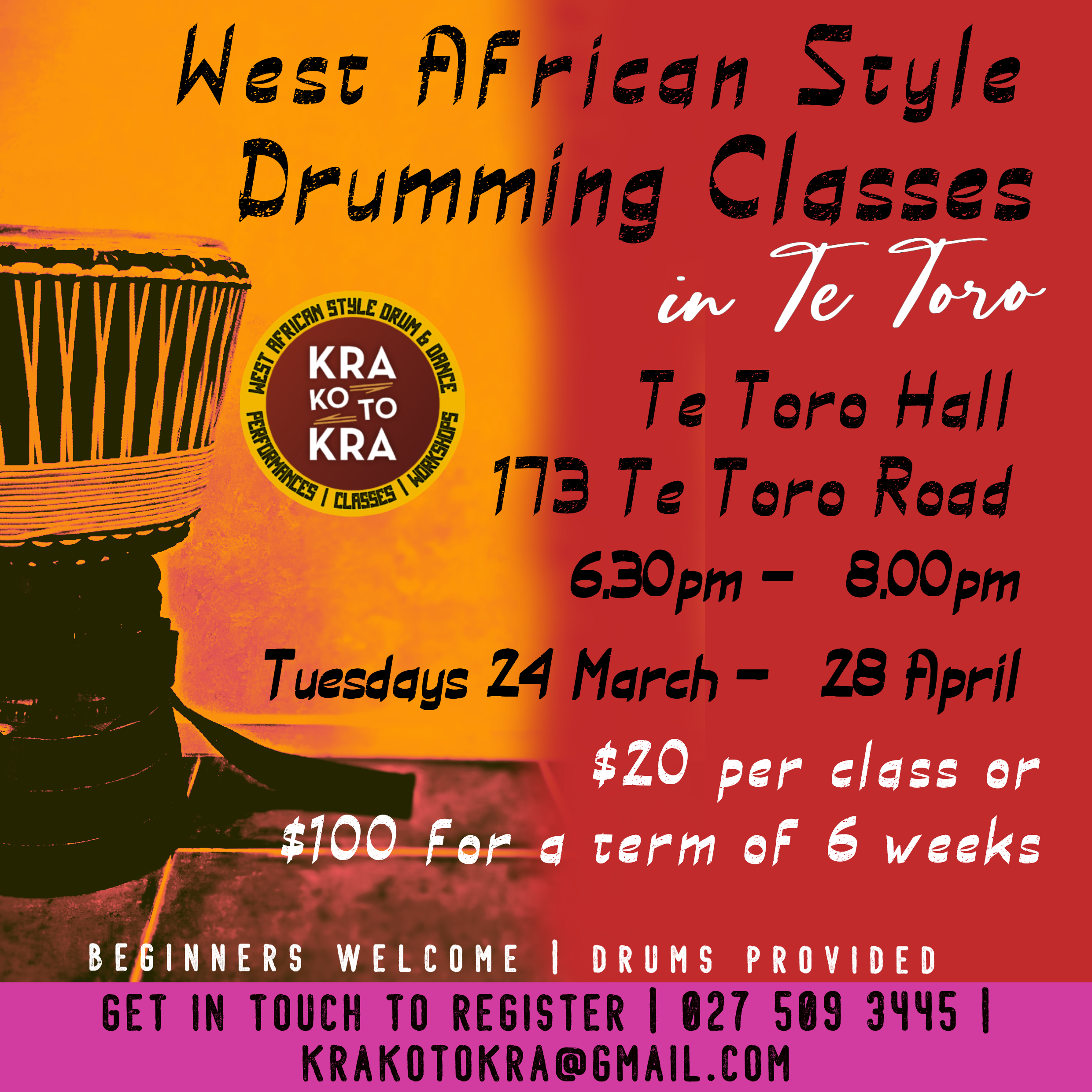 Kra KoTo Kra was founded in 2018, as a West African style drumming ensemble, offering performances, classes and workshops in New Zealand.